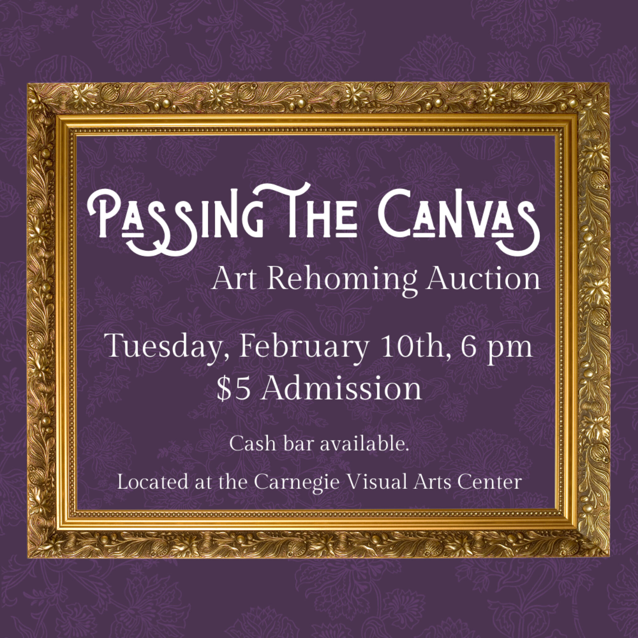 Join us at the Carnegie Visual Arts Center on Tuesday, February 10th, at 6 pm for an exciting evening of discovering art that has been cherished and ready to find a new home. All pieces up for auction have been sourced from our generous local donors. The event will feature both silent and live auctions. Admission is $5 and a cash bar will be available.